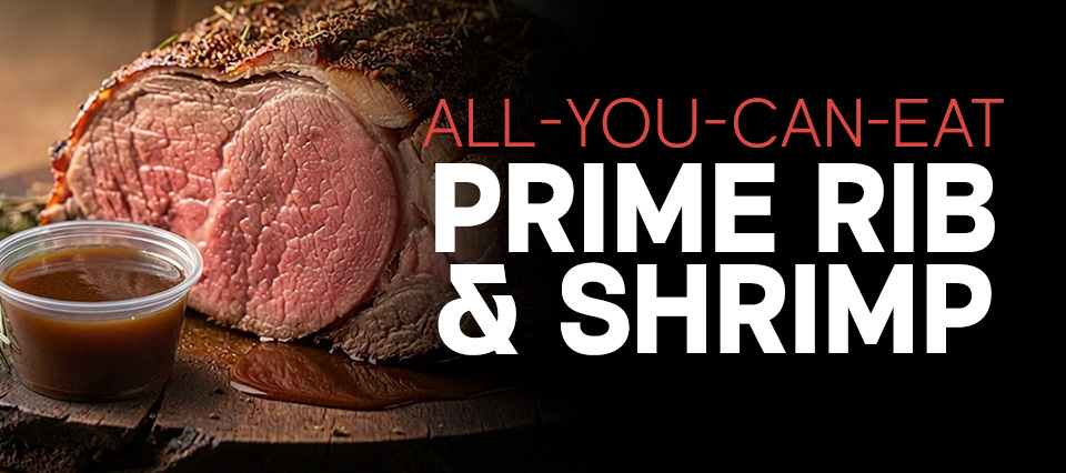 All-you-can eat prime rib and shrimp with a pasta sauté station.